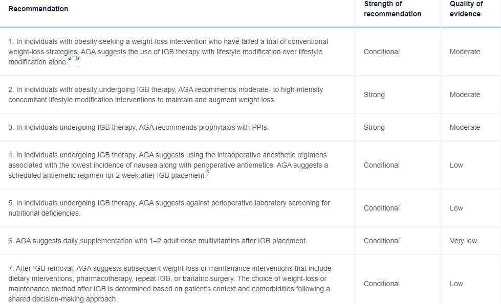 T Muniraj et al. Gastroenterol 2021; 160-1799-1808. Full text: AGA Clinical Practice Guidelines on Intragastric Balloons in the Management of Obesity