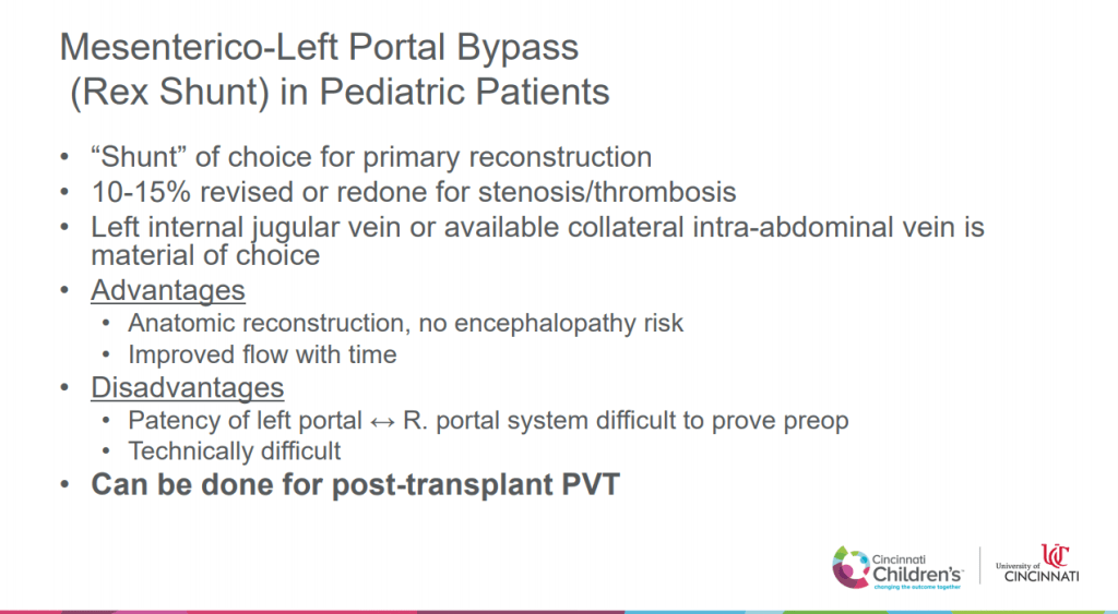 - Rex procedure is technically difficult but is preferred for pre-hepatic obstruction