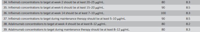 - It was recommended that treatment discontinuation should not be considered for infliximab or adalimumab until a drug concentration of at least 10–15 mg/mL was achieved