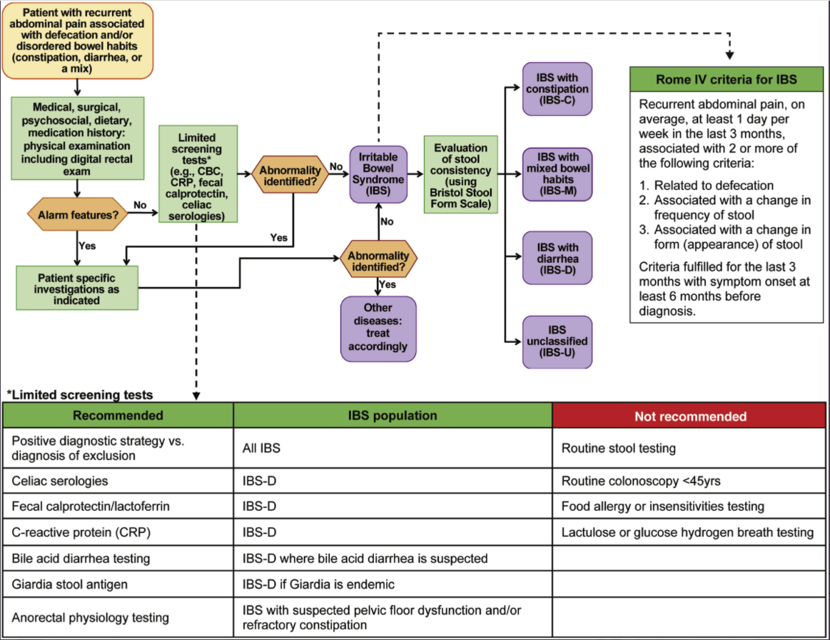 For a short article, this review provides a lot of practical advice. Challenges with IBS include the lack of objective biomarkers and “patients are often dissatisfied with a positive diagnostic approach or even after multiple negative tests.” The author recommends the following: