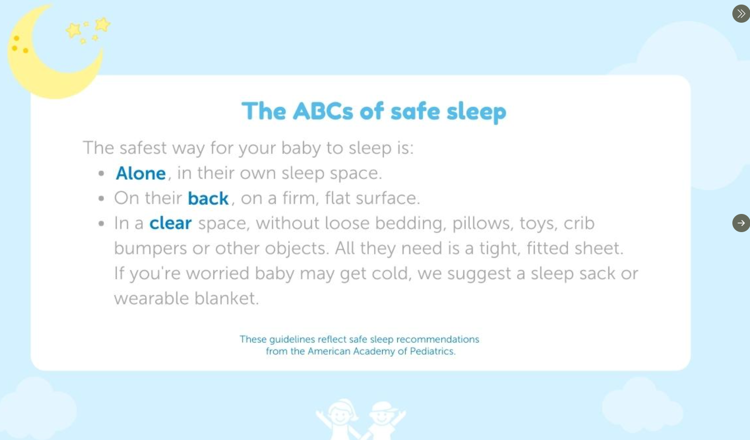A terrific website that focuses on this crucial issue: Charlieskids.org; it has videos, do’s and don’ts as well as a link to Cribs for Kids (discounted safe crib website). In addition,this website has a book called “Sleep Baby Safe and Snug” which incorporates updated recommendations on safe sleep practices.