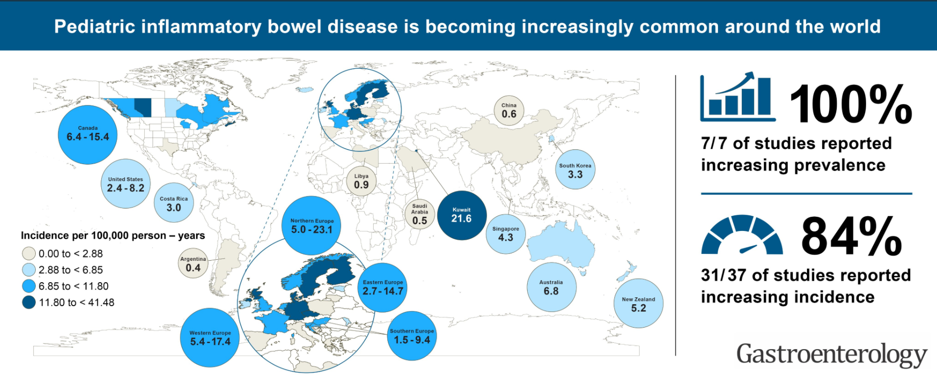 E Kuenzig et al. Gastroenterology 2022; DOI:https://doi.org/10.1053/j.gastro.2021.12.282. Open Access: Twenty-first Century Trends in the Global Epidemiology of Pediatric-Onset Inflammatory Bowel Disease: Systematic Review