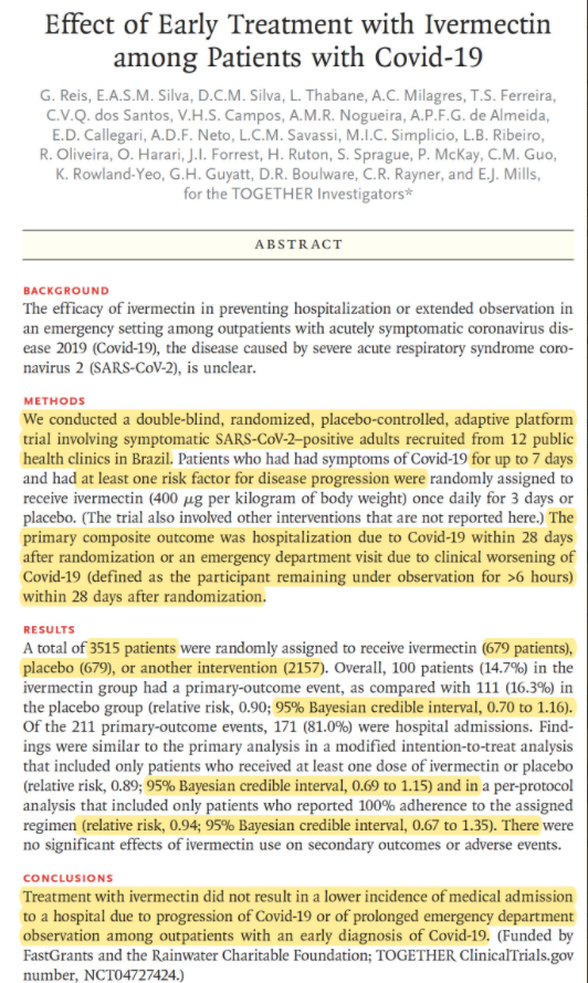 Link to article: Open Access (3/30/22): Effect of Early Treatment with Ivermectin among Patients with Covid-19