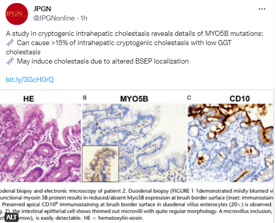 Related article: L Matarazzo et al. JPGN 2022; 74; p e115-e121. MYO5B Gene Mutations: A Not Negligible Cause of Intrahepatic Cholestasis of Infancy With Normal Gamma-Glutamyl Transferase Phenotype