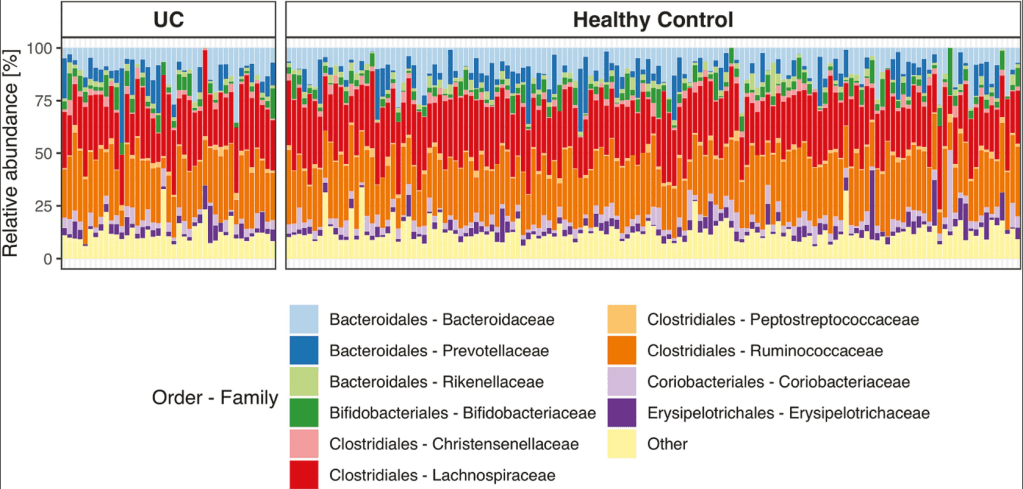 M Frioirksmork et al. Inflamm Bowel Dis 2022; 28: 1081-1089. Open access: Similar Gut Bacterial Composition Between Patients With Ulcerative Colitis and Healthy Controls in a High Incidence Population: A Cross-sectional Study of the Faroe Islands IBD Cohort. This cross-sectional study from the Faroe Islands (which has very high incidence of IBD) consisted of 41 patients with established ulcerative colitis and 144 age- and sex-matched healthy controls.