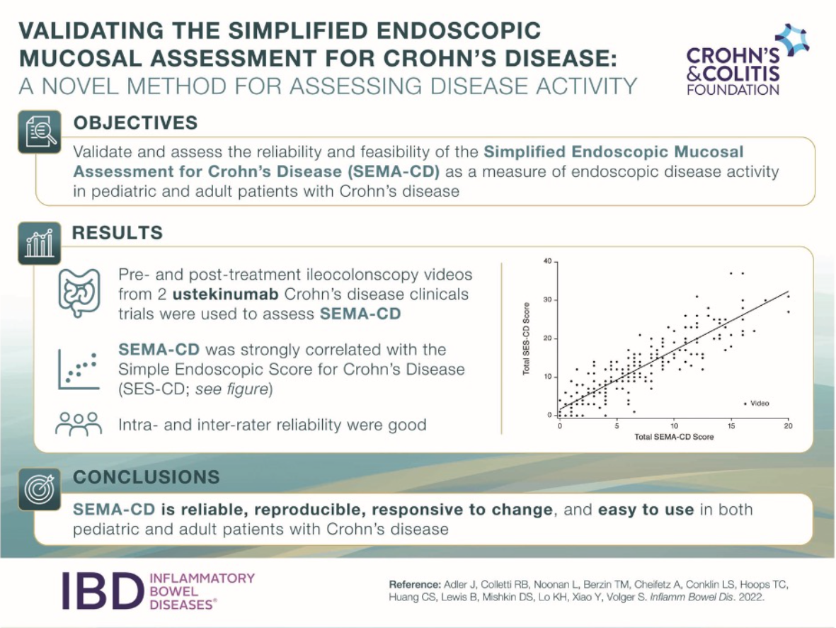 J Adler et al. Inflamm Bowel Dis 2022; Open Access! Validating the Simplified Endoscopic Mucosal Assessment for Crohn’s Disease: A Novel Method for Assessing Disease Activity