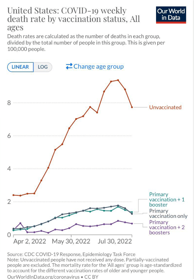 Ongoing Risk of Death in Those Without COVID-19 Vaccination Image Posted on October 22, 2022 by gutsandgrowth Share this: Click to email a link to a friend (Opens in new window) Email Click to share on X (Opens in new window) X Click to share on Facebook (Opens in new window) Facebook Like Loading... Related