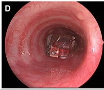 This case report describes placement of a Bravo pH capsule into the bronchus rather than in the esophagus. The complication was quickly recognized and managed by having ENT remove the capsule during the same anesthetic. It is noted that the esophageal mucosal findings included “longitudinal furrows, edema, and mucosal friability.” Biopsies “demonstrated esophagitis consistent with GER.”