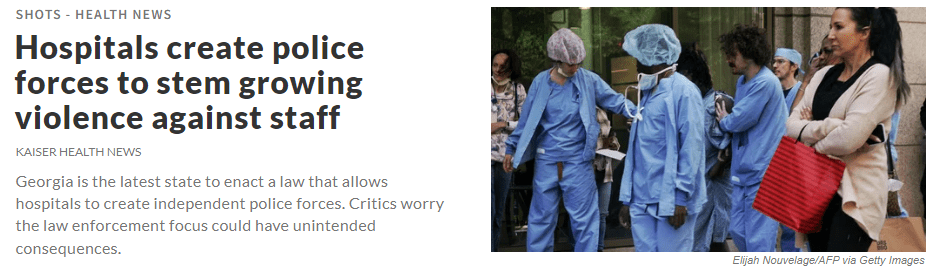 NPR 5/15/23: Hospitals create police forces to stem growing violence against staff