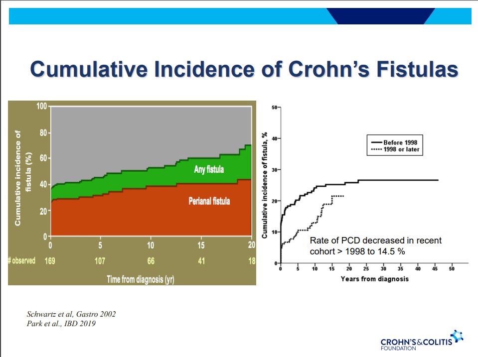 Another very good review by David Schwartz on The Daunting Duo: Management of Stictures and Fistula. Below are some of my notes and some slides; my notes may contain errors in transcription or omission. Can get access to all 49 slides here: IBD Pro CCFA 2023 Atlanta