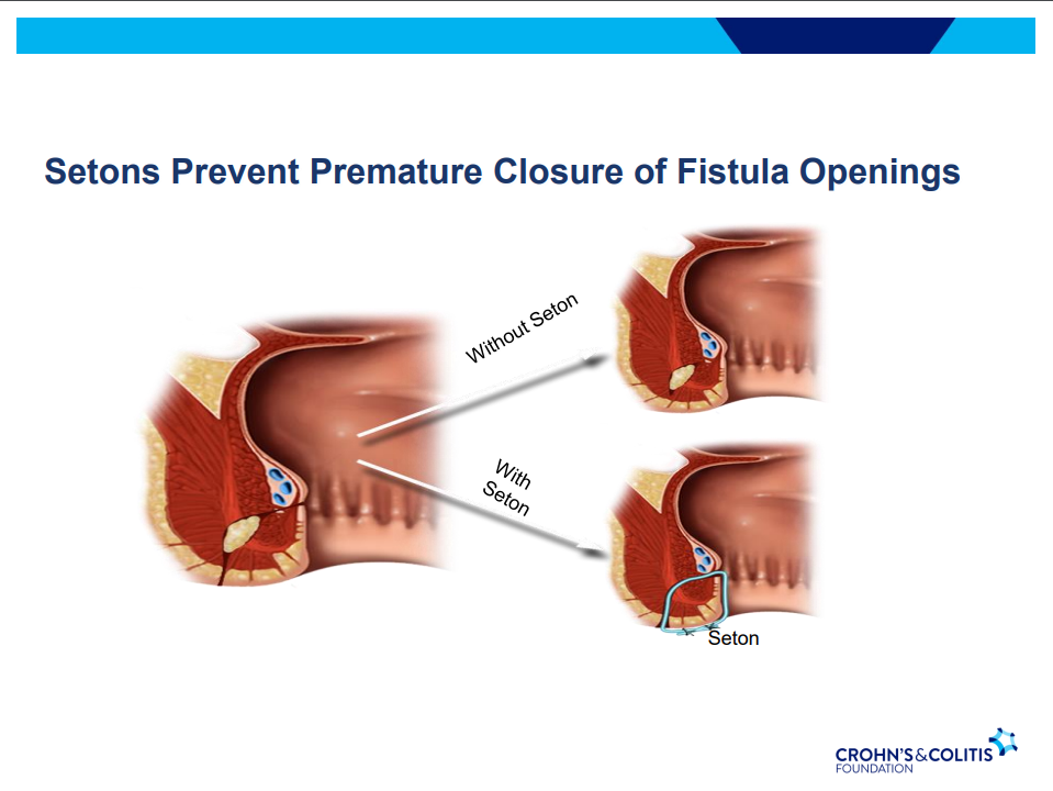 - Antibiotic therapy recommended until Seton removed (not short-term treatment) –improved healing rates along with medical therapy