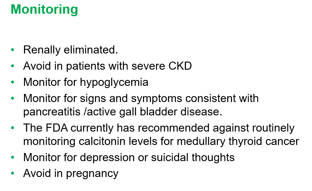 - GLP-1 agents are not recommended in the following: patients with gastroparesis, and patients with a personal or family history significant for MEN 2 A /MEN 2 B/ Medullary thyroid cancer