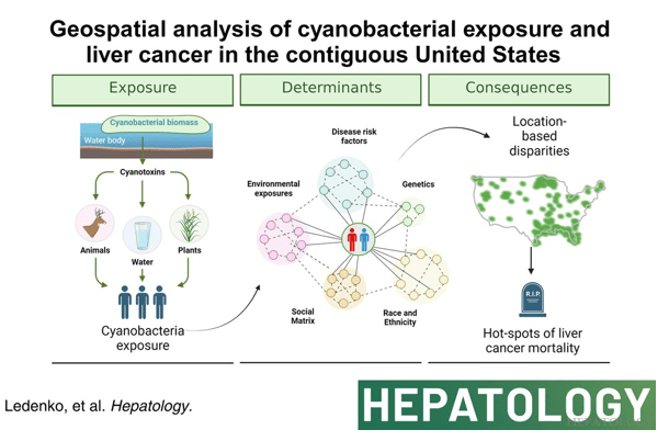 M Ledenko, SO Antwi, T Patel. Hepatology 2024; 79: 575-588. Geospatial analysis of cyanobacterial exposure and liver cancer in the contiguous United States