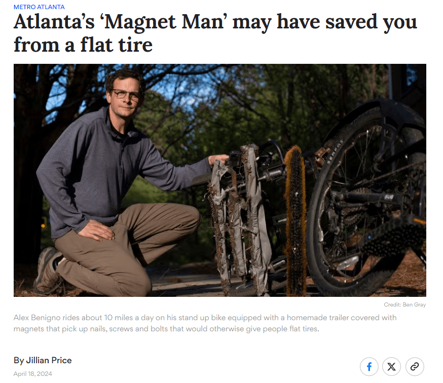AJC 4/18/24: Atlanta’s ‘Magnet Man’ may have saved you from a flat tire