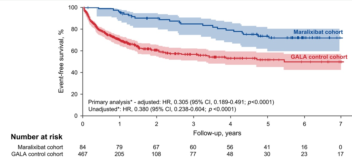 - Event-free survival in the maralixibat cohort (n=84) was significantly better than the GALA cohort (n=469) (HR, 0.305)