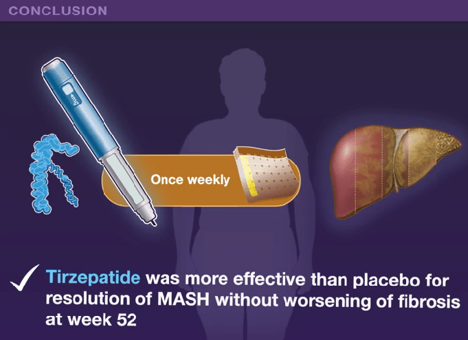 Background: The efficacy and safety of tirzepatide, an agonist of the glucose-dependent insulinotropic polypeptide and glucagon-like peptide-1 receptors, in patients with MASH and moderate or severe fibrosis is unclear.