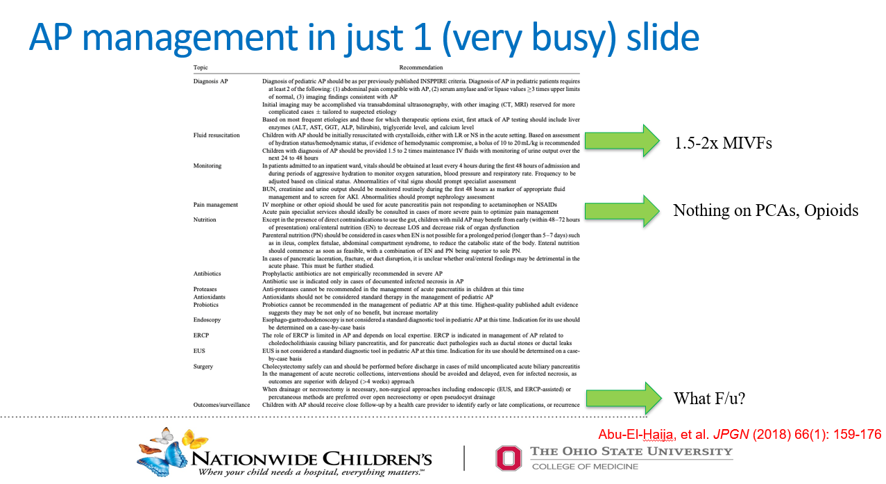 - Acute Pancreatitis: NASPGHAN Clinical Report.