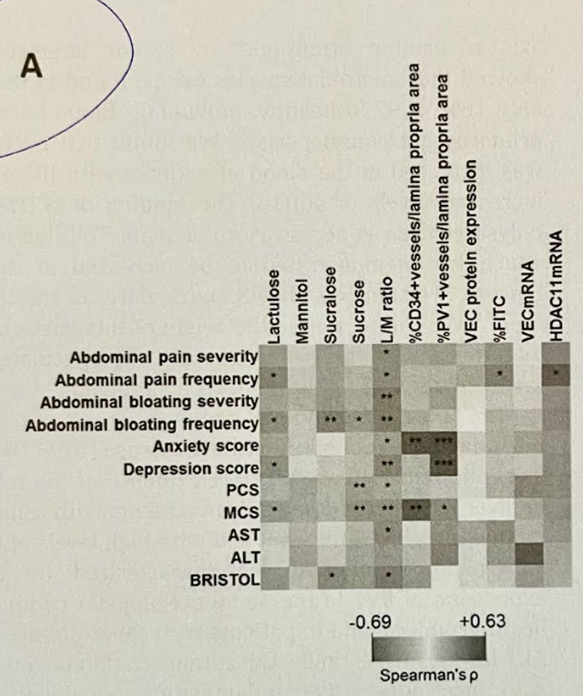 - One novel finding was correlation of epithelial barrier markers with gastrointestinal symptoms and gut vascular dysfunction with systemic systems including anxiety and depression (see heat map below)