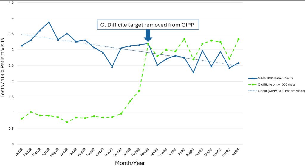My take: This study shows the benefit of removing C. diff from GIPPs to drive more appropriate testing and targeted treatment. GIPPs, while convenient, often identify C. diff colonization. This approach is cost-effective and reduces harms of unnecessary antibiotic treatment.