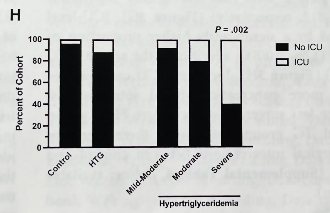 - “It is well-established that severe HTG levels increase pancreatitis risk by increasing serum chylomicrons and free fatty acids, causing pancreatic ischemia, acidosis and vascular injury…In adults, TG levels >/= 200 mg/dL are independently associated with pancreatic necrosis.”