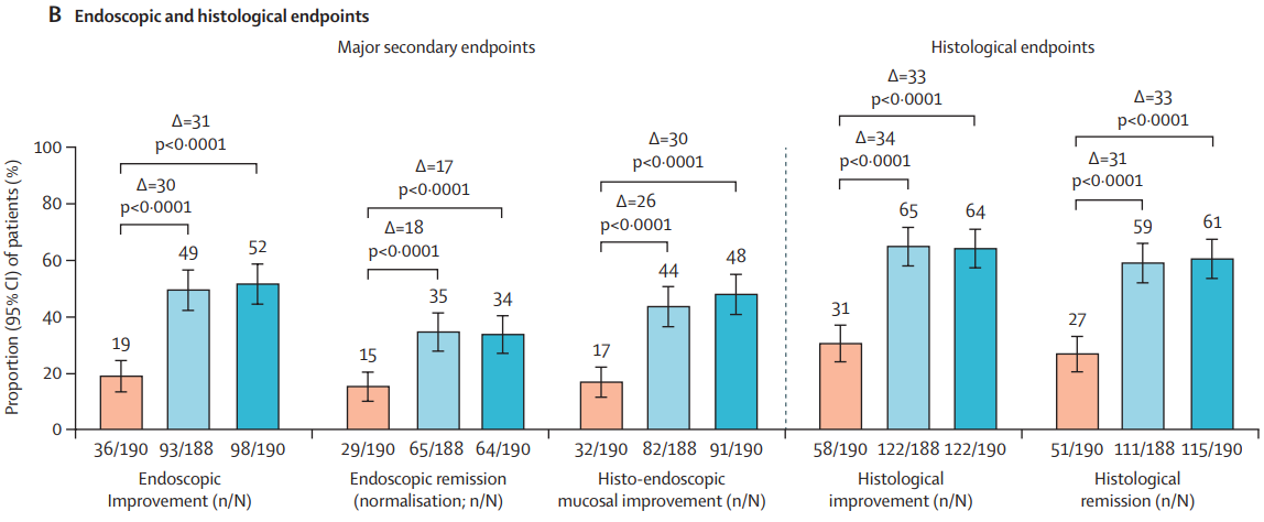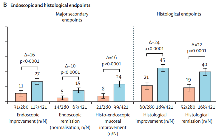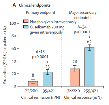 - “Overall, 34% (129 of 378) of patients in the guselkumab groups achieved endoscopic