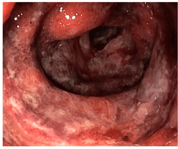 A 10 yo underwent an EGD due to nausea, melena and abnormal CT (showing thickening in the the duodenum and first jejunal loop. Two days later, she developed a cutaneous rash appeared on her legs, buttocks, and elbows.