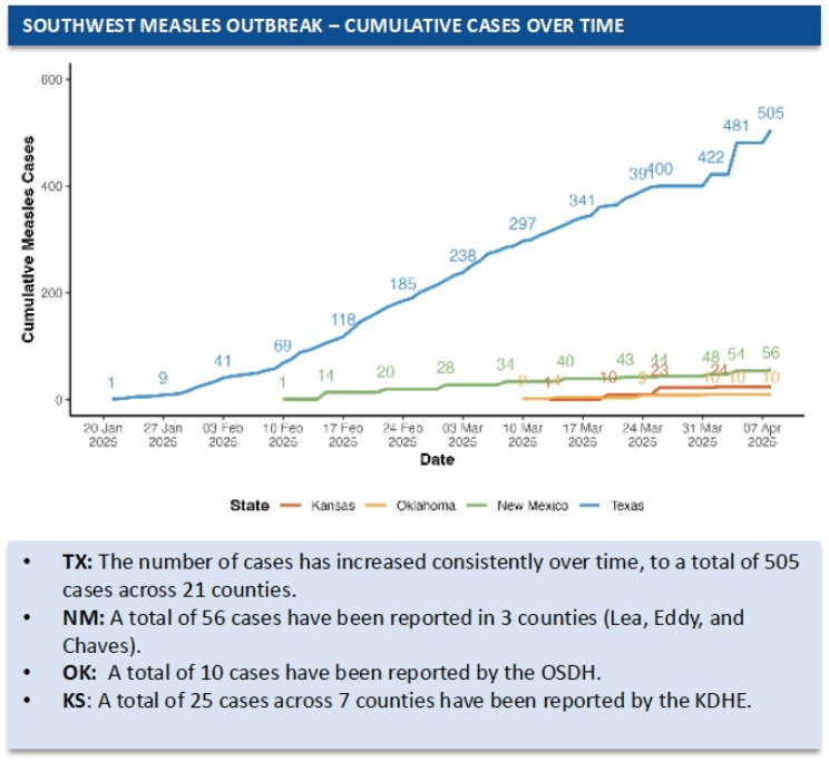 For those interested in a deeper dive into the measles numbers, you can follow Caitlin Rivers substack. From her notes on April 11: