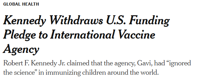 Stephanie Nolen, NY Times 6/25/25: Kennedy Withdraws U.S. Funding Pledge to International Vaccine Agency