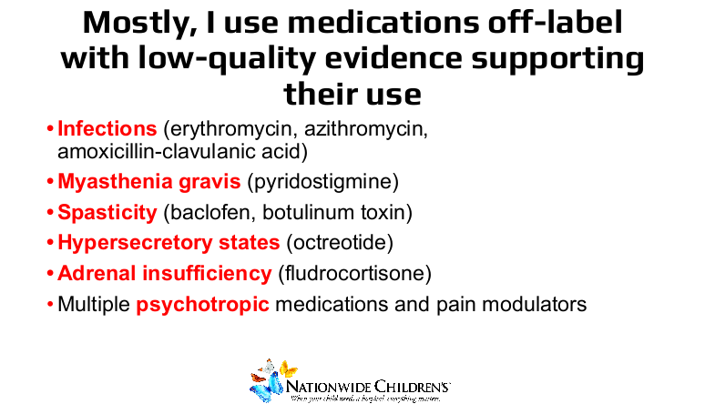 - Many of the medicines used for DGBIs and related symptoms have approval for other uses