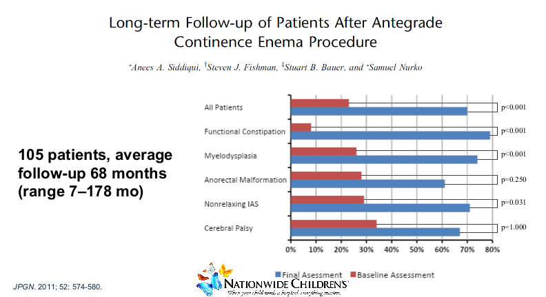 - “All patients with chronic pseudo-obstruction necessitating parenteral nutrition should have a G-tube and an ileostomy.” It may help them come off parenteral nutrition