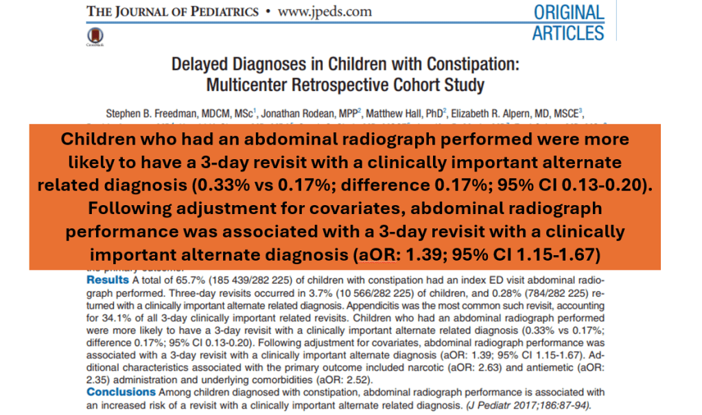 - Don’t order AXR to diagnose constipation. AXRs ordered in ER to diagnose constipation are associated with a slightly higher likelihood of a missed diagnosis.