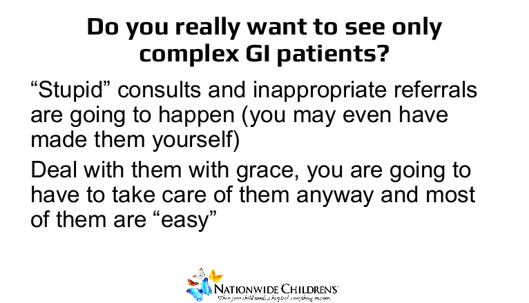 - Don’t belittle or get upset over an “easy” or “stupid” consult. All of us need help and hardly anyone wants to manage only highly-complex patients