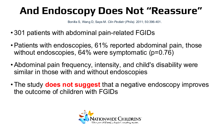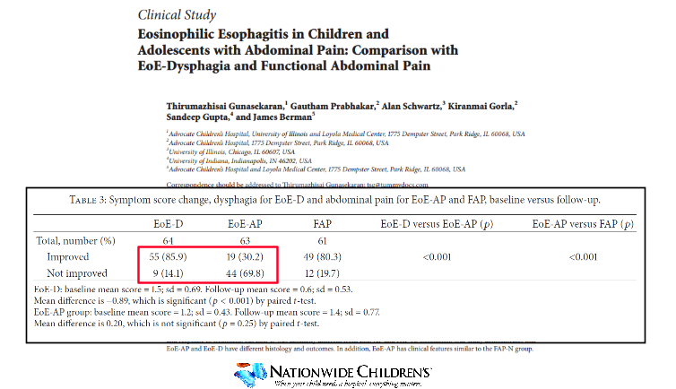 - Identification of eosinophilic esophagitis is not helpful in resolving stomach pain