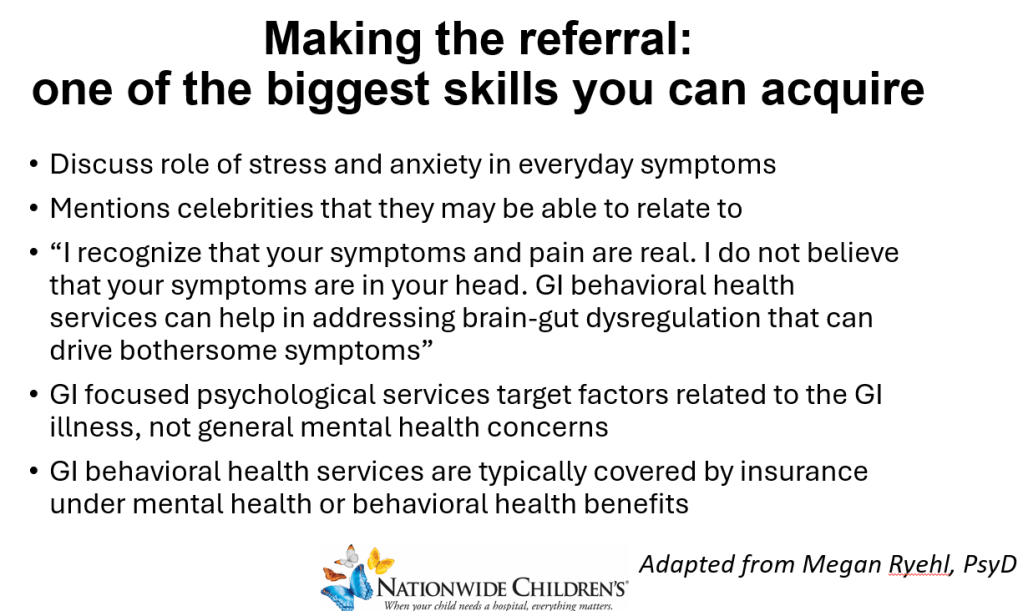 • For more serious mental health concerns, referral to psychiatry is more appropriate