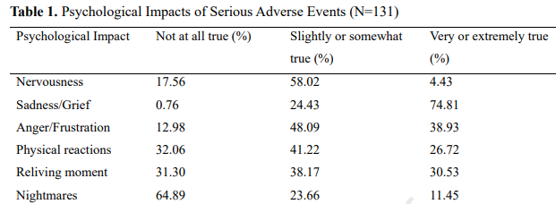 Discussion Points: “Peer support programs have proven to be well received and highly utilized. Additionally, surgeons criticize the often-punitive handling of SAEs, and note that the tone and culture in the review process following an SAE dictates reduction or exacerbation of SVS.”