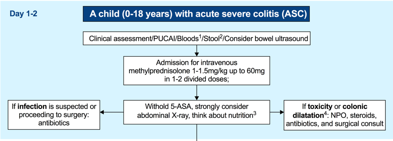 A Assa et al. JPGN 2025; 81:816–85. Open Access! Management of paediatric ulcerative colitis, part 2: Acute severe colitis—An updated evidence-based consensus guideline from the European Society of Paediatric Gastroenterology, Hepatology and Nutrition and the European Crohn’s and Colitis Organization
