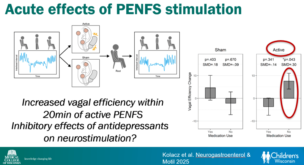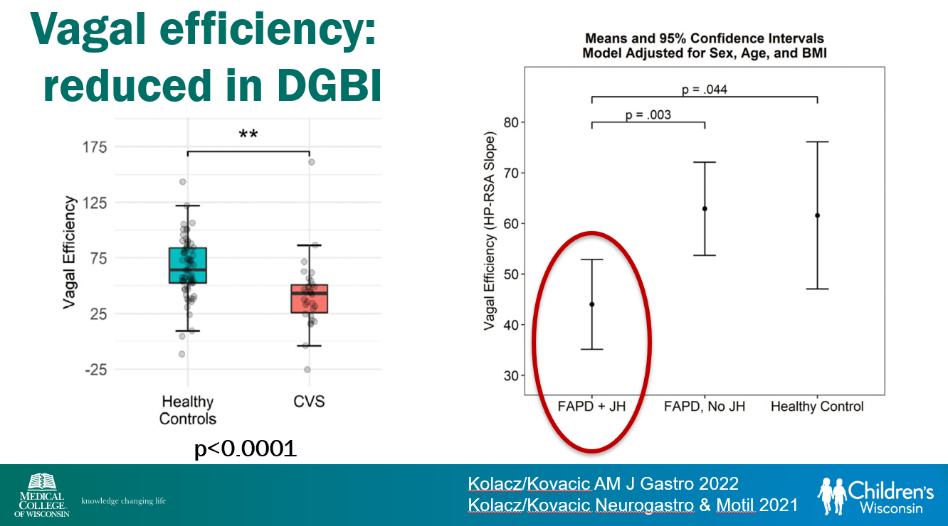 • Vagal efficiency, which is decreased in subsets of DGBI, is a measure of the heart’s regulation of sympathetically-elicited tachycardia (or ‘..heart’s regulation of postural tachycardia’)