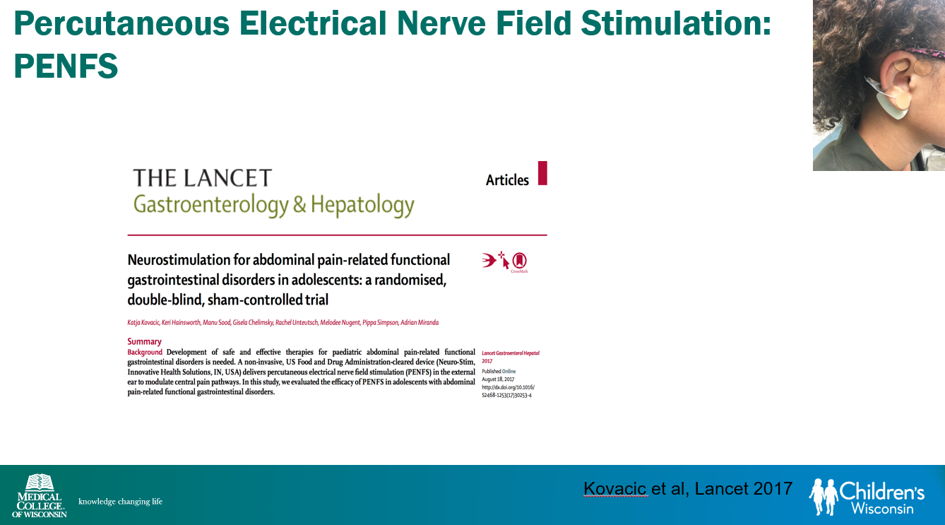 • Percutaneous electrical nerve field stimulation (PENFS) can be useful in functional nausea and many DGBIs
