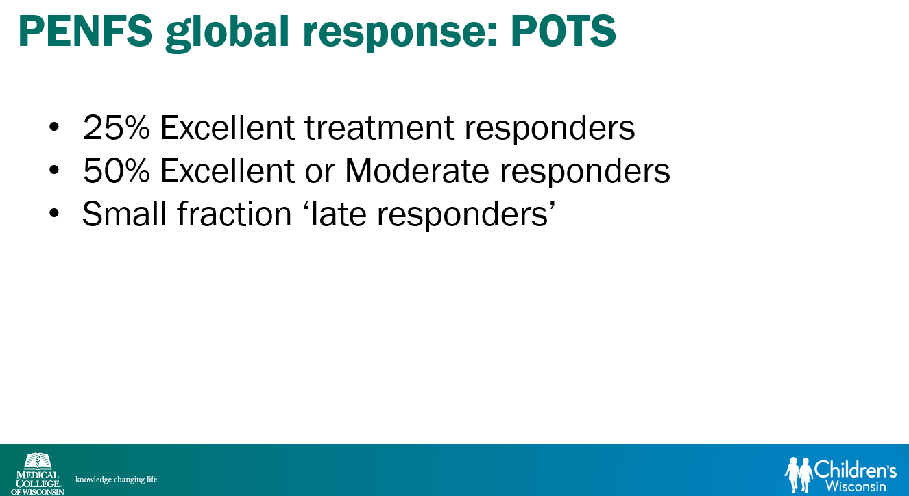 • Potential treatments for autonomic dysfunction: Lifestyle changes, Neuromodulation, pharmacology: fludrocortisone, propranolol, pyridostigmine, midodrine