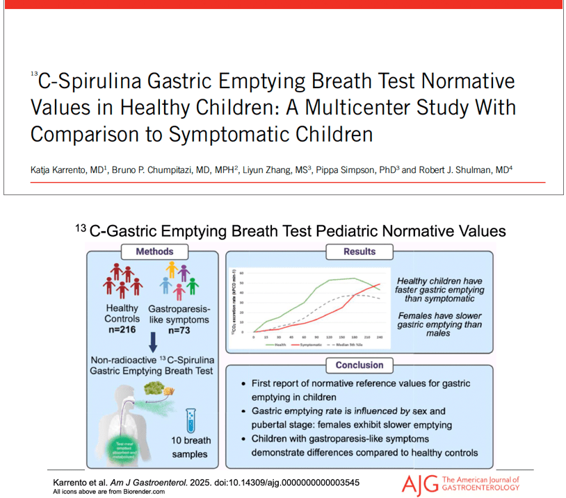 • Emerging research on use of C13-Spirulina breath test to assess gastric emptying