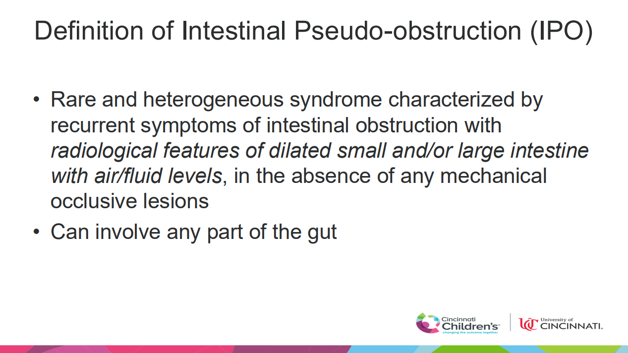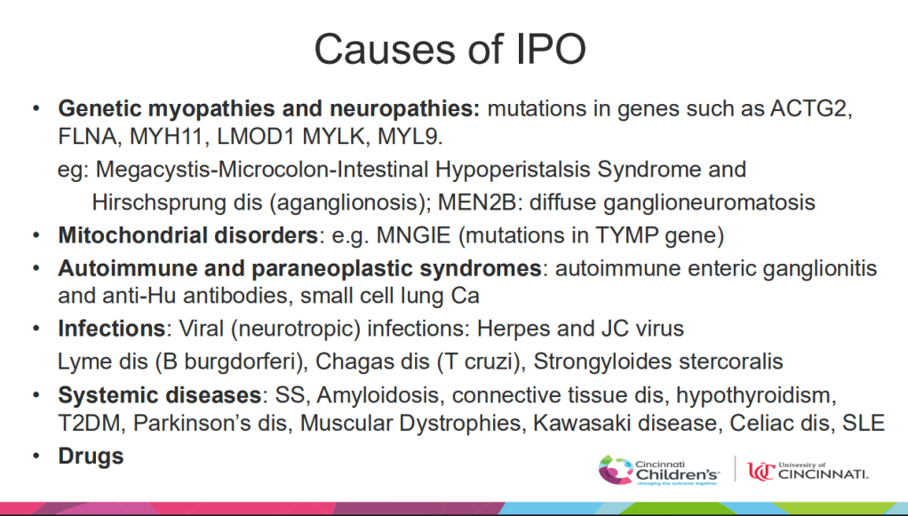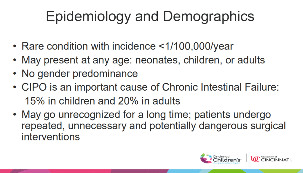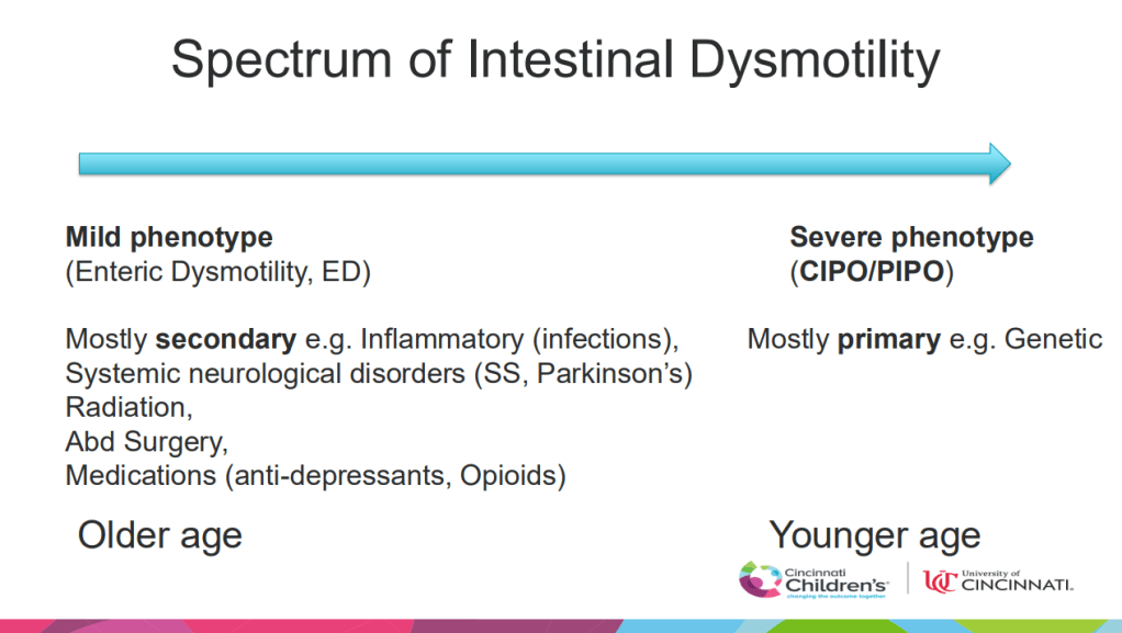 Dr. Ajay Kaul gave our group a terrific update on chronic intestinal pseudo-obstruction (CIPO). My notes below may contain errors in transcription and in omission. Along with my notes, I have included many of his slides.