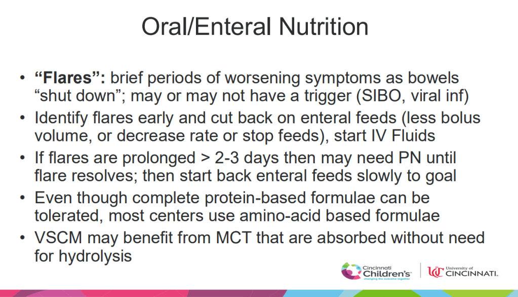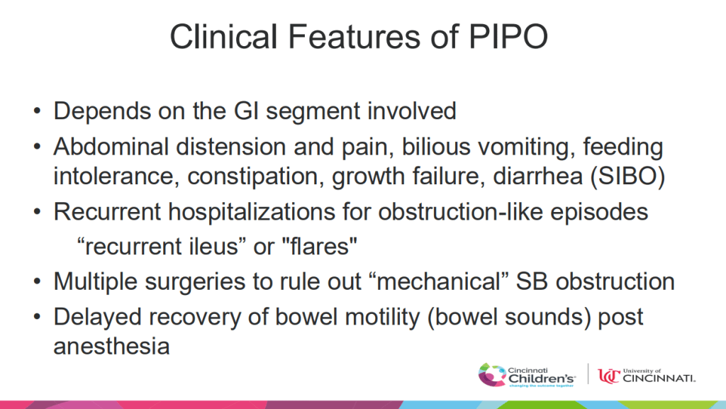 - Flares of CIPO are well-recognized but poorly described. Often, these last for a few days and can be managed with supportive care