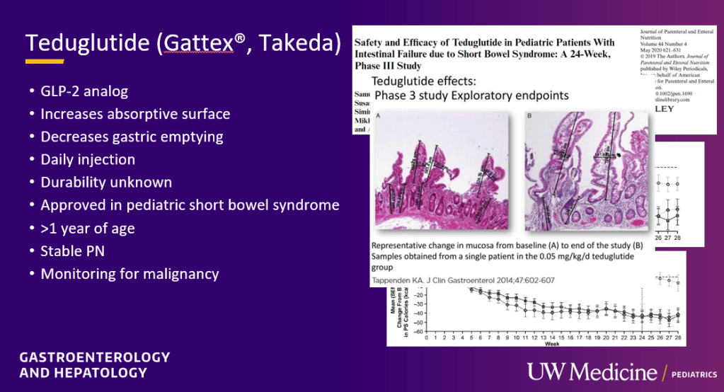 - Teduglutide can reduce the need for HAL. It is a hormone (like insulin) and sustained effects are generally not seen when it is stopped. However, especially in patients close to coming off HAL, it may be beneficial