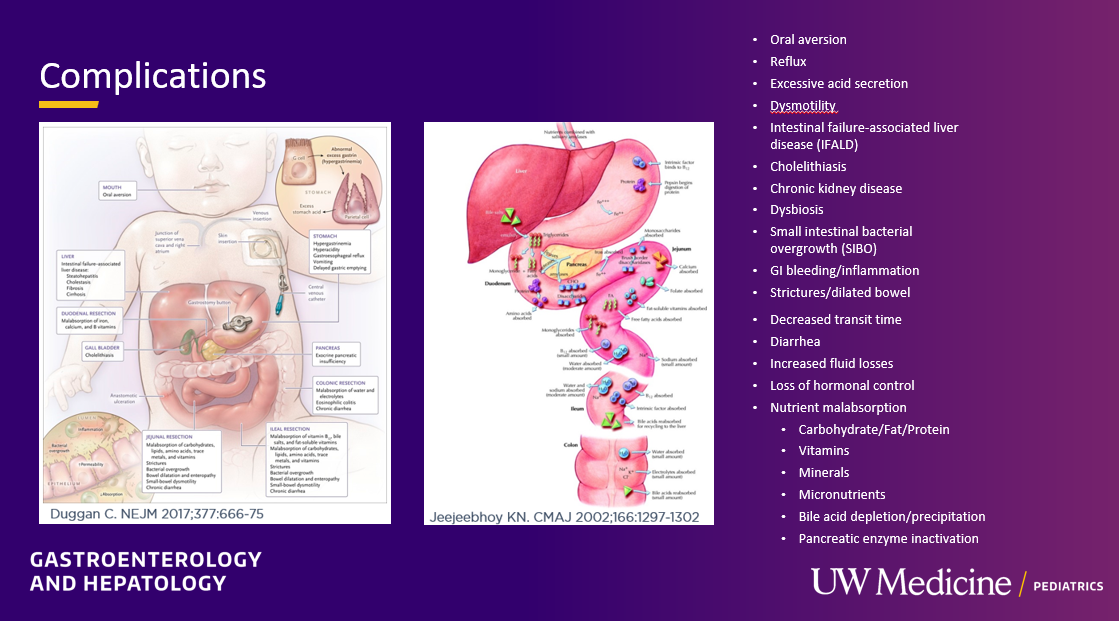 My notes below may contain errors in transcription and in omission. In addition, the information provided is based on what is done in Seattle. However, there is not a lot of evidence for much of what is done in intestinal rehabilitation. Thus, there is variation in practice at different centers and what works for one patient might not work for another. Following my notes, I have included many of her slides.