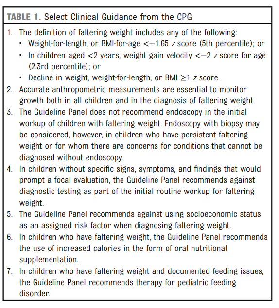 - New clinical practice guideline defines ‘faltering weight,’ recommends treatment options