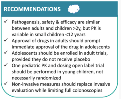 - “While it is paramount to achieve a precise and comprehensive approval process for new drugs in pediatric IBD, it is equally important to expedite the process, so children and adolescents are not denied effective treatment available for adults with IBD…”