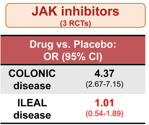 • JAK inhibitors did not work well for ileal disease, but performed well for colonic disease