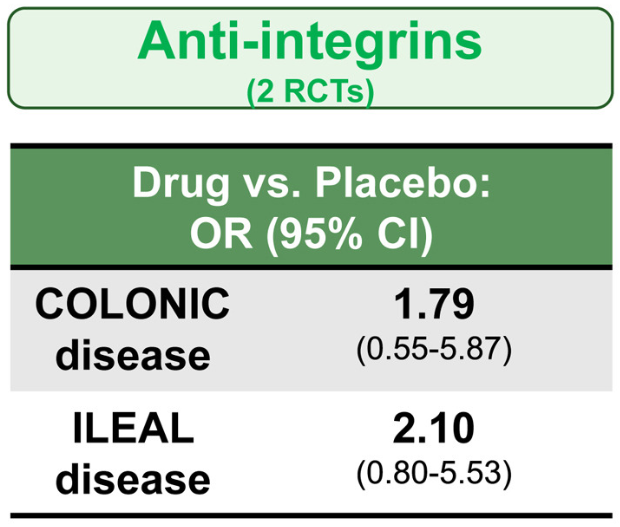 • Anti-integrins, like vedolizumab, had some efficacy for ileal disease but generally a lower clinical remission rate than other agents