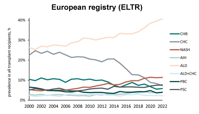 - Chronic hepatitis C decreased: SRTR 40% to 7%, and ELTR 25% to 7%