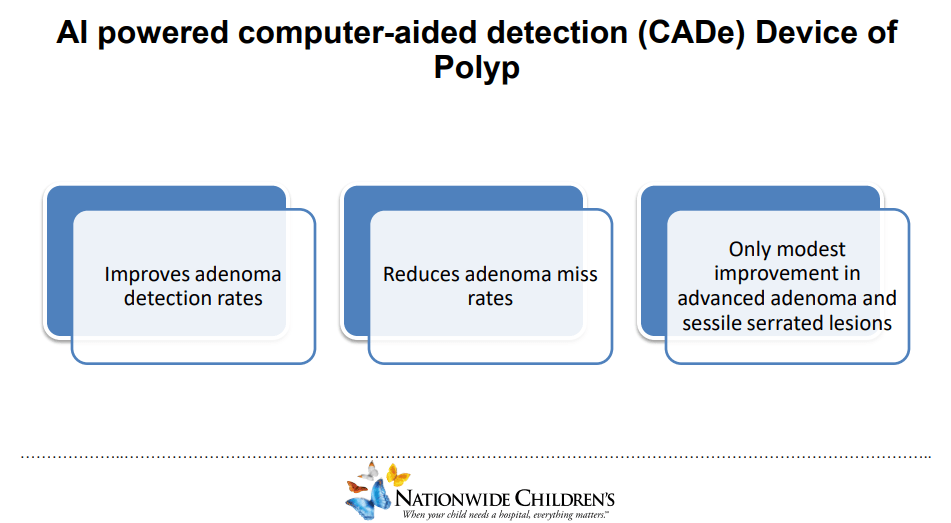For colonoscopy, AI may aid polyp detection but whether this is clinically meaningful is unclear